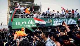 احتفال شعبي حاشد بالمنتخب العراقي في شوارع بغداد